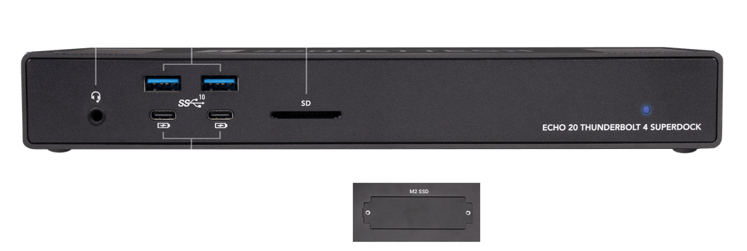 More connections than you expect from a Thunderbolt™ dock – NVMe SSD storage capability an HDMI port ultra-fast 2.5 Gigabit Ethernet support and more! With this superdock a single cable connects your computer to your digital world. The Sonnet Echo™ 20 Thunderbolt 4 SuperDock is your universal docking station for today and tomorrow. Compatible with Apple M series Macs Thunderbolt™ 3 Intel Macs Thunderbolt 3 and 4 Windows computers Thunderbolt 4/USB4 Chromebook and M series iPad Pro.