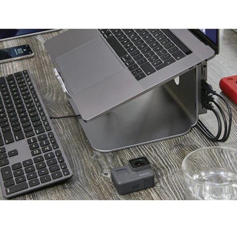 The CASA Hub Stand combines a laptop stand with a USB-C 5-in-1 connectivity hub with an adjustable 0°~180° tilt design for perfect eye-level screen position and comfortable keyboard typing angle. Features Silicon pads for enhanced grip and scratch protection along with a convenient foldable and portable design. Comes with a nylon braided cable with a 90° L-shaped USB-C connector for relieving cable bending stress and easy connection.