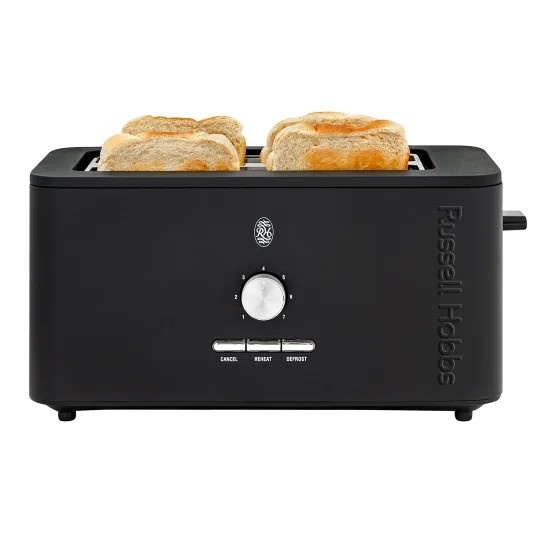 Russell Hobbs Nexus Stainless Steel 4-Slice Toaster. Crisp warm and just the way you like it — the Nexus 4-Slice Toaster delivers perfect toast every time. With wide slots for all bread sizes 7 browning levels and reheat defrost and cancel functions breakfast is on your terms. Plus the removable crumb tray makes cleanup easy.